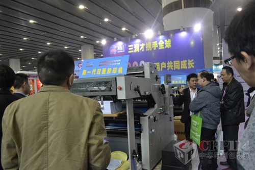 三潤(rùn)才生產(chǎn)的新一代雙面膠印機(jī)引圍觀